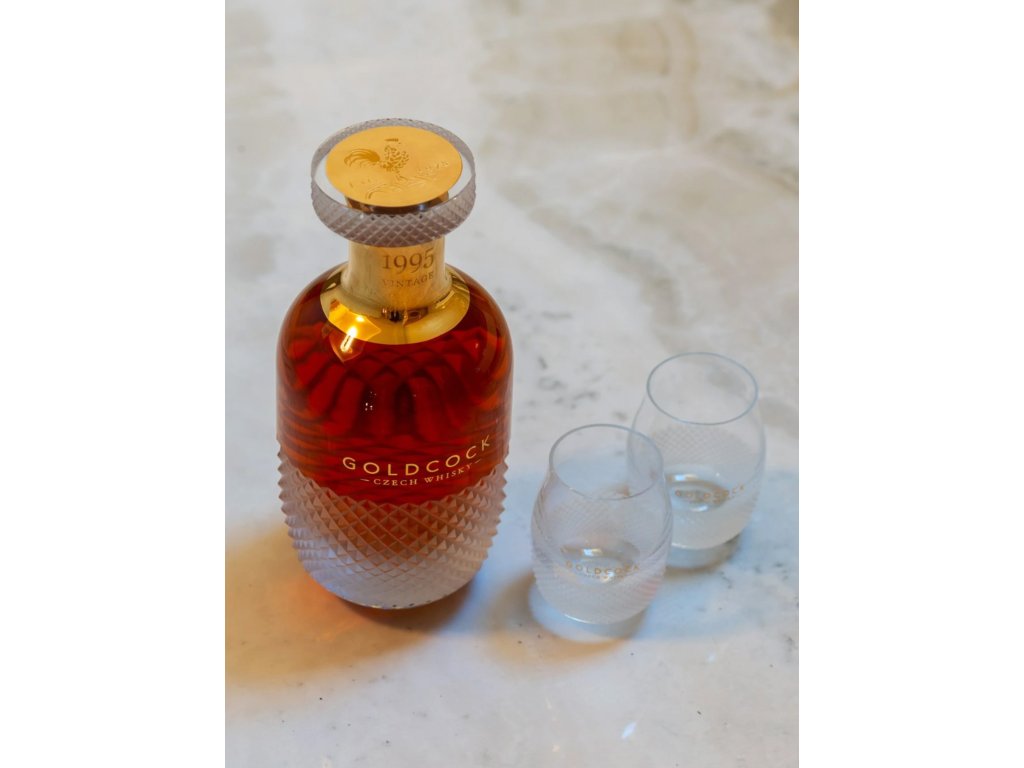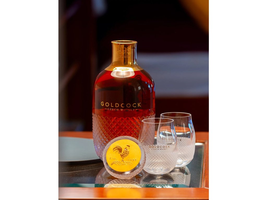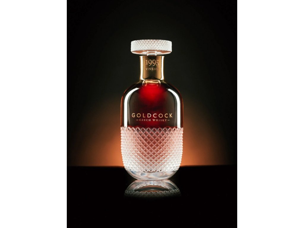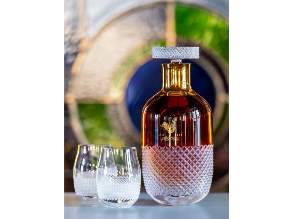 Exkluzivní destilát je uložen v ručně foukané křišťálové karafě navržené designérem Lukášem Jabůrkem a vyrobené ve sklárně Květná 1794, nejstarší fungující sklárně na Moravě. Každý kus zdobí pískování, zlacení a unikátní zátka broušená diamantovým brusem s logotypem kohouta – symbolem značky GOLDCOCK.